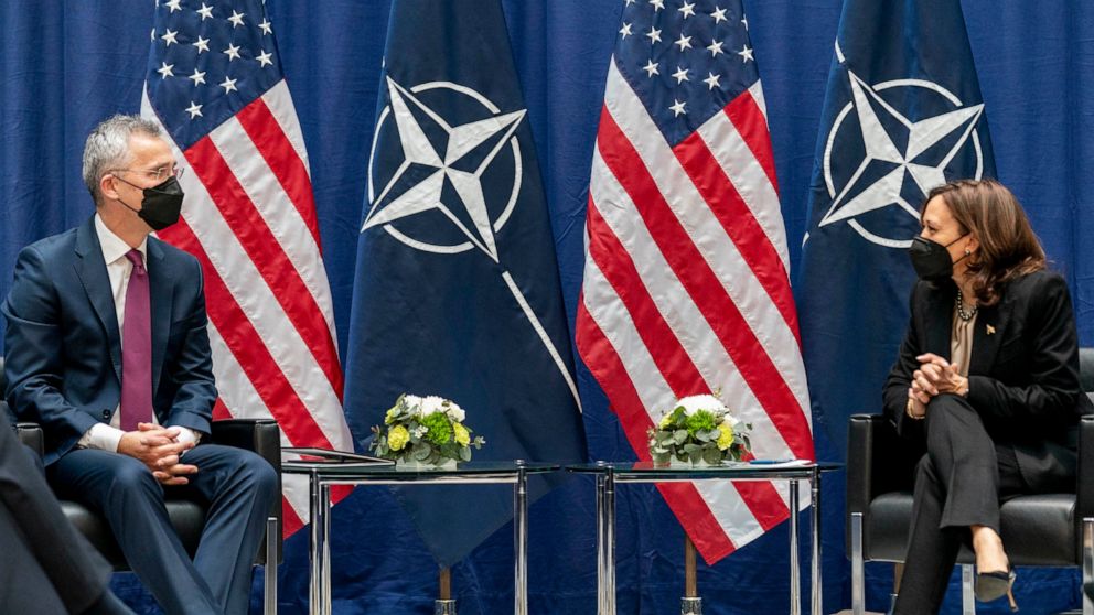 In a meeting with NATO Secretary-General Jens Stoltenberg as the annual Munich Security Conference got underway, Harris thanked the alliance for “all that you have done” throughout the crisis.