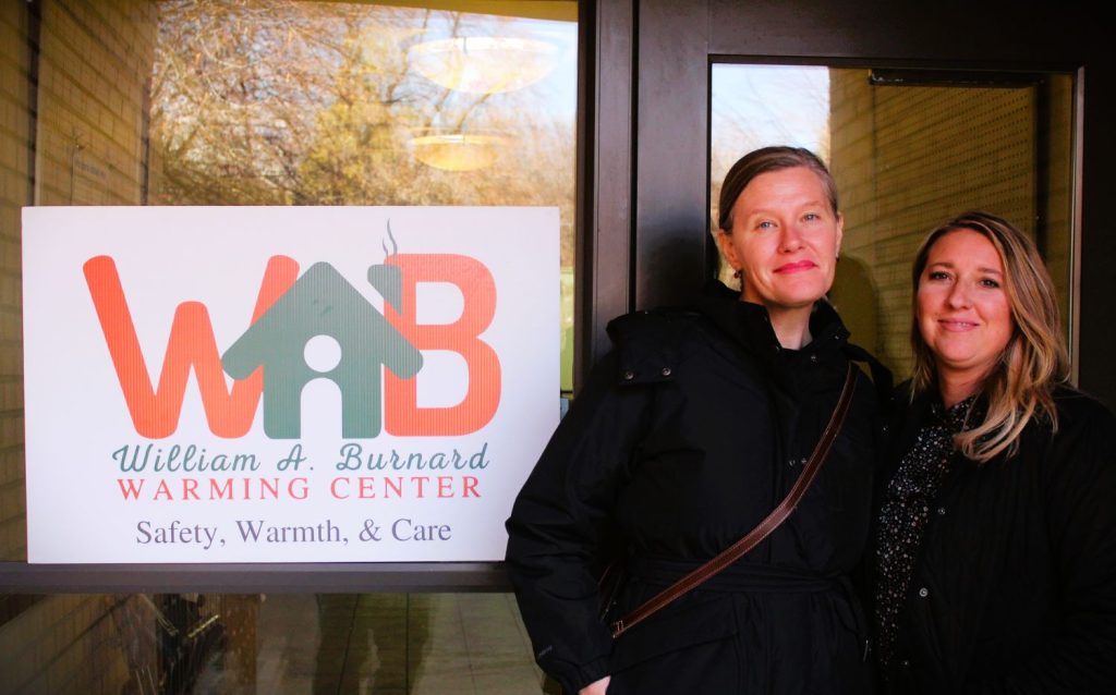 Lindsey Harrelson the new executive director and Cansas Christiansen a site manager for the William A. Burnard Warming Center stand at the door of the facility on Tuesday November 28, 2023.