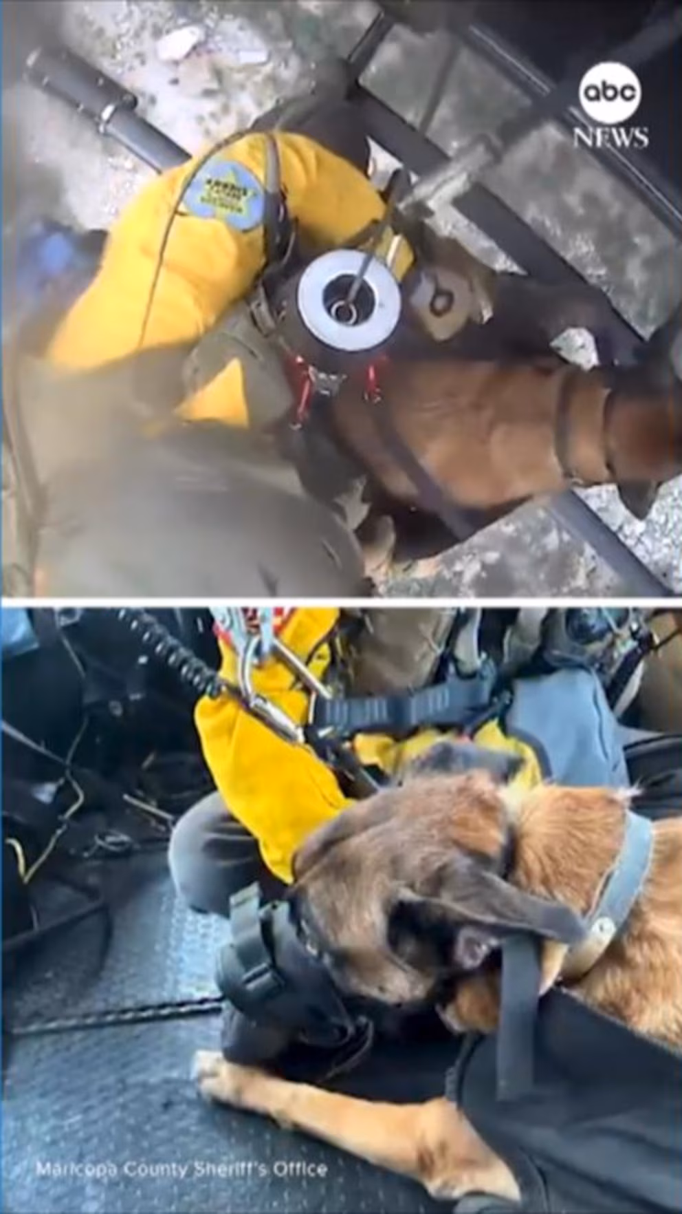 Authorities in Arizona shared video of a “brave pup” being airlifted to safety after the dog was injured while out on a hike with its owner near Phoenix.