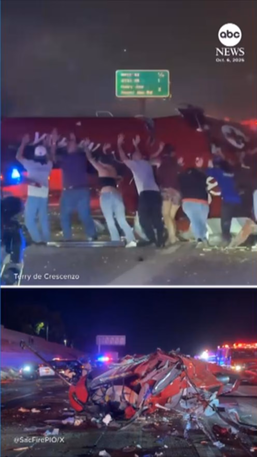 New video shows drivers racing to lift a medical helicopter that crashed Monday night on a busy Sacramento highway.