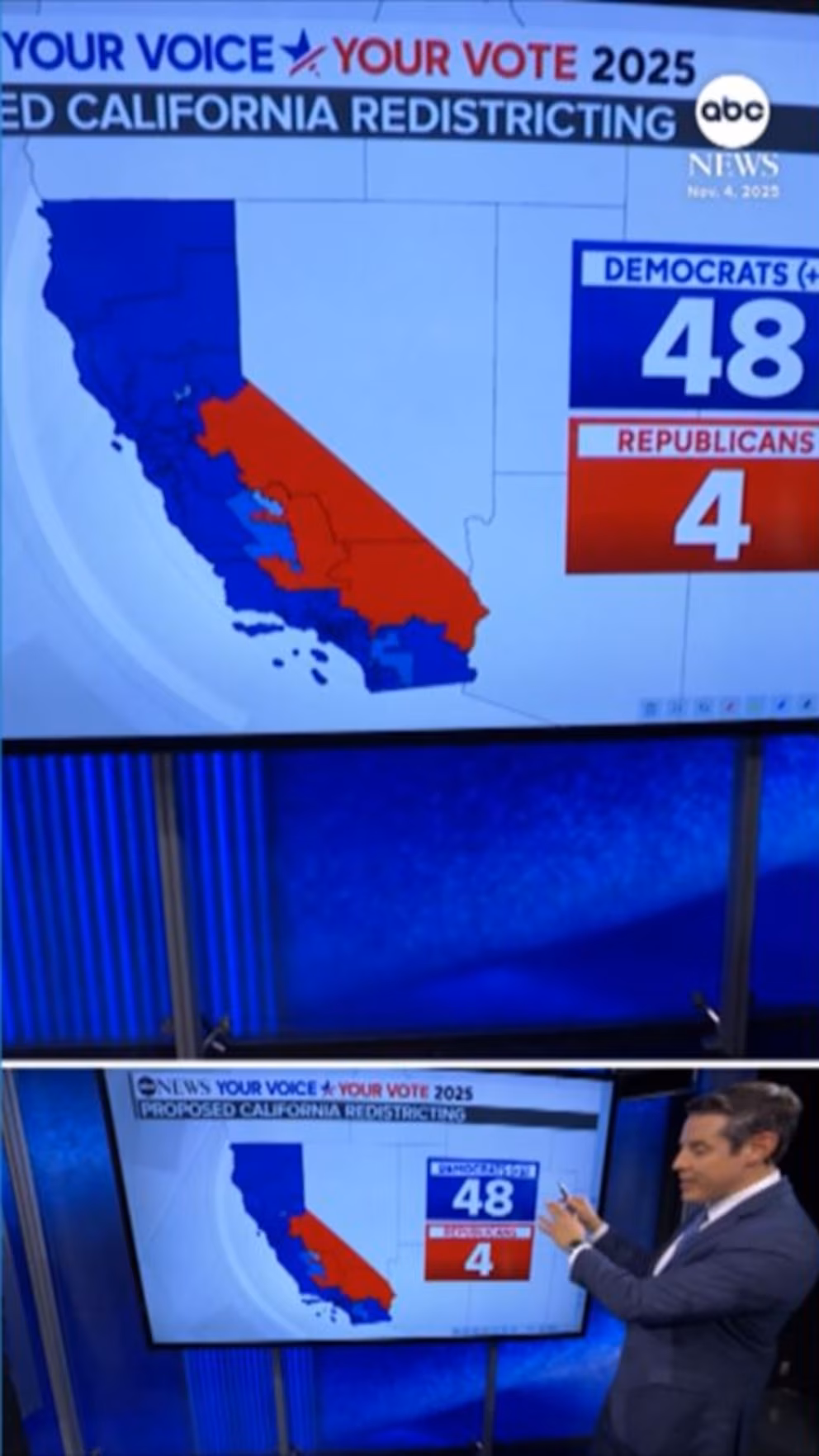 California’s Proposition 50, redrawing the congressional map to make five districts more Democratic-leaning, will pass, ABC News projects.