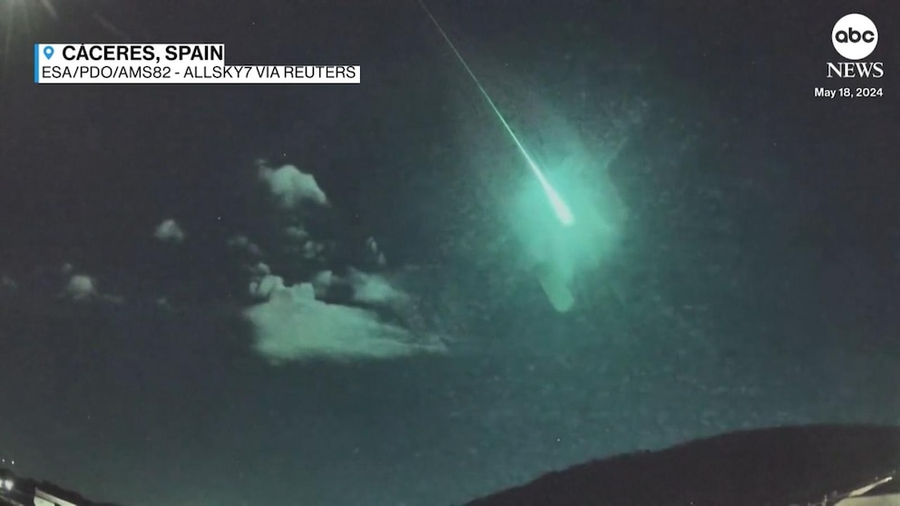 A bright comet fragment lit up the skies in a spectacular display visible over parts of Spain and Portugal late Saturday night, according to the European Space Agency.