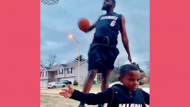 Kansas City dad pays homage to LeBron James’ highlight reel dunk photo with his son on their driveway hoop.