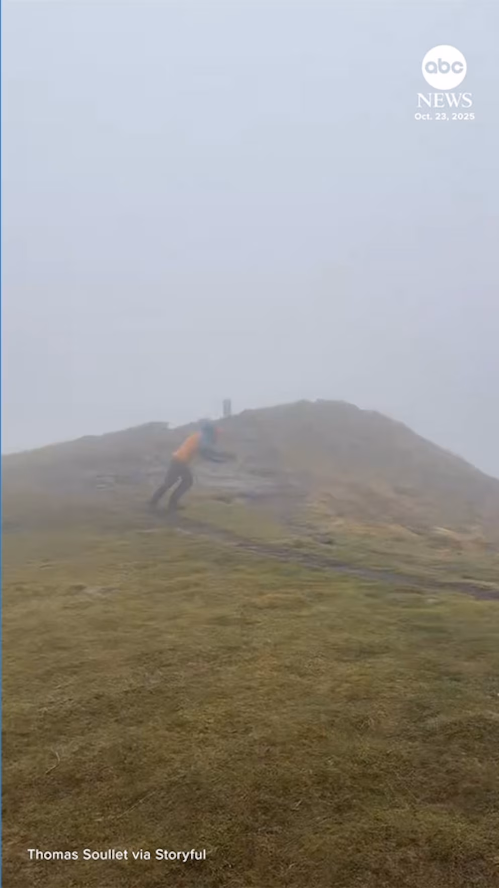 Strong winds in central France made it difficult for the man seen in this video to stay upright, much less make any forward progress.