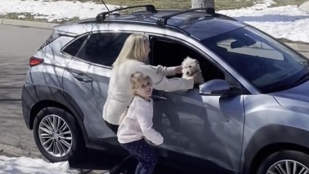 Liz Houman and her daughter Lily were reunited with their dog Mishka, who went missing for eight months and was found over 2,000 miles away in Michigan.