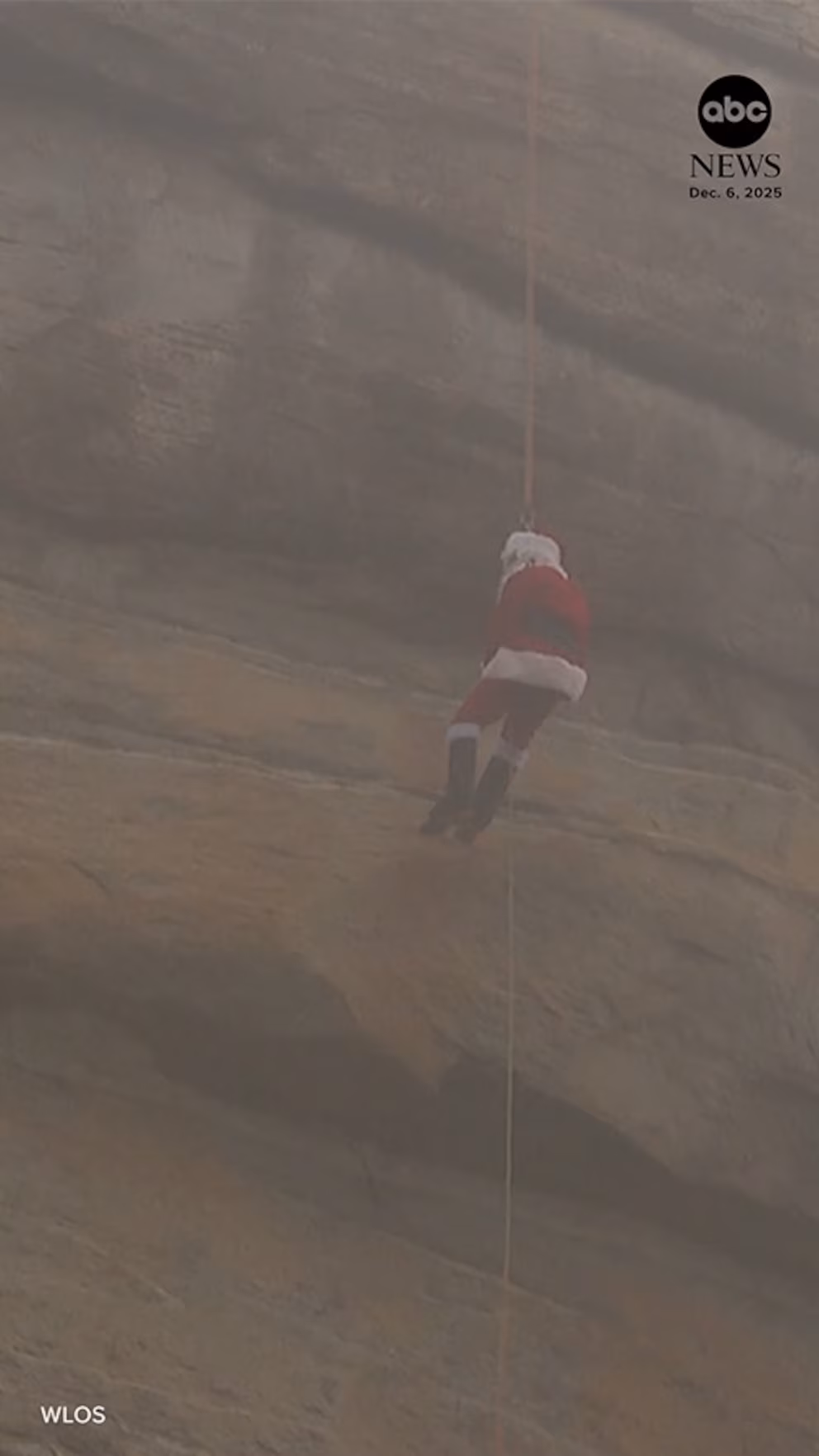 Santa Claus was spotted in North Carolina, where he’s warming up for Christmas Eve by rappelling down the aptly named Chimney Rock.