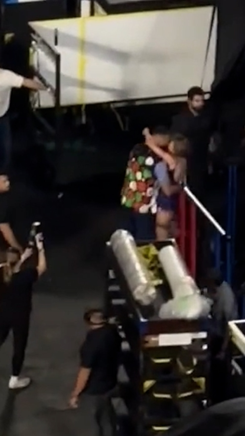 Video shows the singer and Chiefs’ tight end embracing each other after her show.