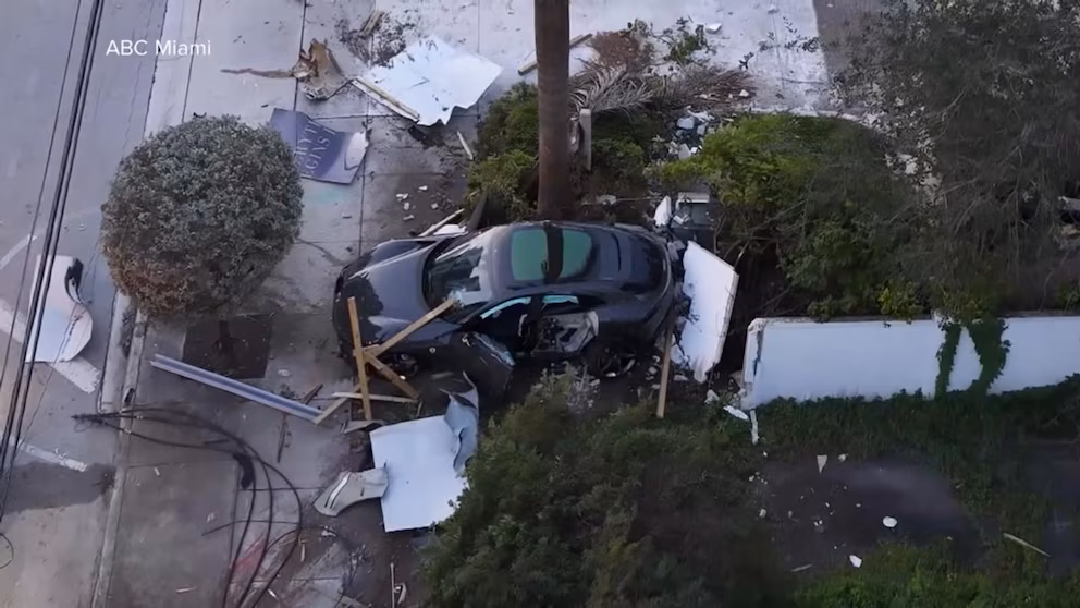 A driver in a stolen Ferrari crashed into a utility pole after being hit by a police cruiser, knocking out power to nearby buildings.